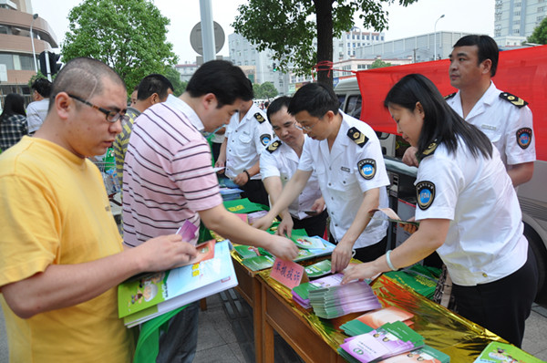 圖為武漢市東西湖區(qū)基層監(jiān)督所工作人員向轄區(qū)居民宣傳食品藥品安全常識(shí)。劉智深 攝