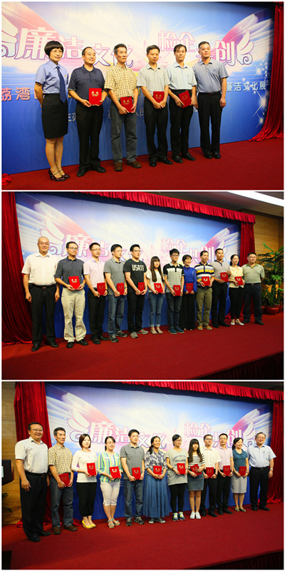 參會(huì)領(lǐng)導(dǎo)為榮獲2014年檢企廉潔文化展覽一、二、三等獎(jiǎng)作者頒獎(jiǎng)