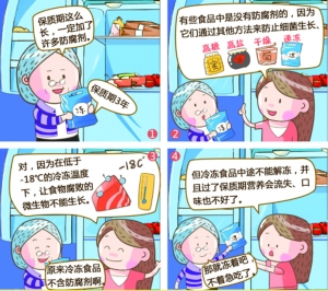 專家表示,添加食品防腐劑是為了避免因微生物(細(xì)菌或霉菌)的生長(zhǎng)導(dǎo)致食品的腐壞,保證食品的安全性。微生物的生長(zhǎng)需要營(yíng)養(yǎng)物質(zhì)、水分、適當(dāng)?shù)臏囟扰c酸度,只要任何一條不符合微生物生長(zhǎng)的要求,它們便不能繁殖。因此,人們利用干燥、鹽漬、糖漬、低溫、灌裝等方法來“搞掂”這些微生物。在冷凍溫度下(低于-18℃),雖然食物腐敗的微生物沒有死,但是停止了“折騰”,不能生長(zhǎng)了,只要不化凍,它們也就無法“鬧事”了。但是,雖然低溫可以解決“食物腐敗”的問題,但長(zhǎng)期低溫保存卻無法改變“食物變質(zhì)”的結(jié)果。低溫貯藏的過程中,油脂、蛋白質(zhì)會(huì)發(fā)生氧化,食物固有的風(fēng)味也會(huì)慢慢喪失,口感會(huì)變差。因此,冷凍食品也要在保質(zhì)期內(nèi)盡快食用。