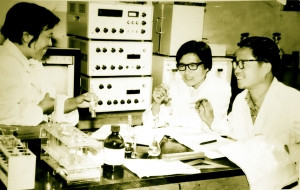 這一合成過程需要高溫反應(yīng),尤其是關(guān)鍵的“環(huán)合反應(yīng)”需要在易燃溶劑中進(jìn)行。據(jù)1978年參加工作就被分配到麝香酮小組擔(dān)任實驗員的袁世琪回憶,實驗室就設(shè)在當(dāng)時濟(jì)南榜棚街宏濟(jì)堂制藥的三間毛氈屋頂?shù)钠椒績?nèi),實驗臺是水泥制做的。由于實驗過程需防火防爆,寒冬沒有暖氣但又不能生火爐,盛夏沒有防暴設(shè)備,更沒有設(shè)備通風(fēng)驅(qū)暑,條件非常差。加上原料大多易燃易爆,又不具備精準(zhǔn)操控的手段,實驗人員不得不一手拿著滅火器、一手進(jìn)行操作。