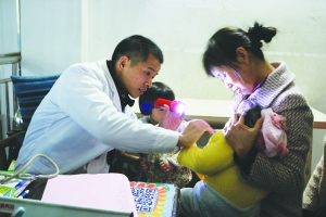 圖為肖金華正在為患兒做檢查。
