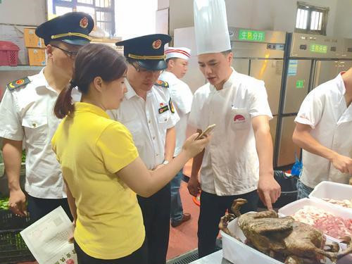 圖為該局執(zhí)法人員在景區(qū)彩色村飯店檢查餐飲食品安全情況。