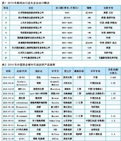 近年來,制劑出口得到更多制藥企業(yè)的關(guān)注。西藥制劑附加值高,凈利潤率普遍在30%以上;而大宗原料藥出口平均凈利潤率僅為2%~5%。制劑國際化成為我國原料藥優(yōu)勢向下游轉(zhuǎn)移、優(yōu)化出口結(jié)構(gòu)的重要途徑。2016年,本土規(guī)模制藥企業(yè)(前100強(qiáng))制劑出口同比增長12.3%。