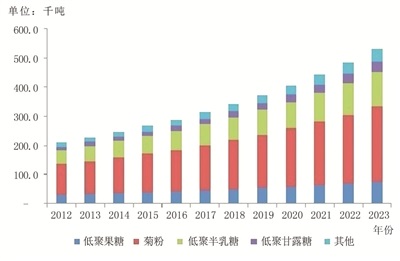 據(jù)Global Market Insights Inc.數(shù)據(jù)顯示,因受到人們消費(fèi)意識(shí)和監(jiān)管法規(guī)的推動(dòng),2015年全球益生元銷(xiāo)售額為33.1億美元,預(yù)計(jì)到2023年會(huì)超過(guò)75億美元,年復(fù)合增長(zhǎng)率達(dá)11.6%。從銷(xiāo)量來(lái)看,2016年~2023年,預(yù)計(jì)全球益生元銷(xiāo)量年復(fù)合增長(zhǎng)率超過(guò)9%,銷(xiāo)量將達(dá)135.9萬(wàn)噸。這表明具有益生元功能的菊粉必將大有可為(見(jiàn)圖3)。