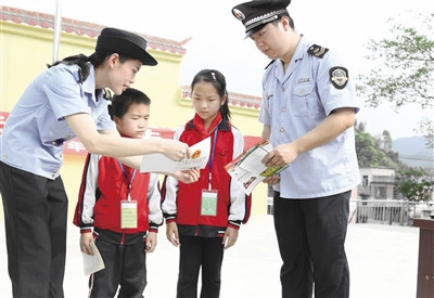 近日,廣西壯族自治區(qū)融安縣食品藥品監(jiān)管部門赴該縣大坡鄉(xiāng)中心小學(xué)開展“關(guān)愛明天普法先行”法制進校園活動。活動緊緊圍繞與學(xué)生密切相關(guān)的食品藥品安全問題展開,監(jiān)管人員對購買食品藥品應(yīng)注意的事項、食品藥品基本常識、常用食品藥品法律法規(guī)以及如何預(yù)防食物中毒等內(nèi)容進行了宣傳講解。