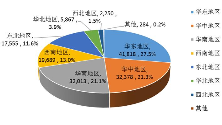 合成毒品濫用有較強的地域特點,以華東地區(qū)最多,其次是華中和華南地區(qū);華東、華中和華南三個地區(qū)的合成毒品報告人數(shù)占全部合成毒品人群的69.9%,顯示這三個地區(qū)是我國合成毒品濫用比較嚴重的地區(qū)。