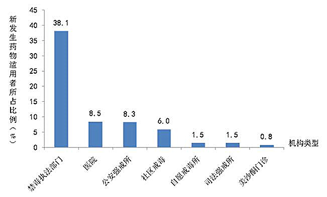 圖8各類機構報告新發(fā)生藥物濫用人群所占比例