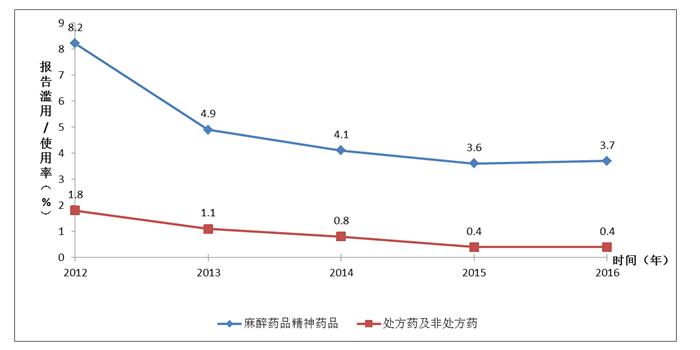 圖17 2012年—2016年醫(yī)療用藥品濫用/使用趨勢