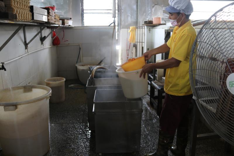 海口豆腐城業(yè)主單位——海南長緣香實業(yè)有限公司總經(jīng)理張秋莊向記者介紹,自8月4日海南省局開展突擊檢查后,公司就在省市區(qū)三級食藥監(jiān)管部門指導(dǎo)下,切實有效地開展各種整改工作,到目前為止已根據(jù)食藥監(jiān)管部門的要求,完成了13項具體整改項目,包括召集全體豆腐車間生產(chǎn)戶舉辦了三期食品安全知識培訓(xùn)班;組織全公司人員對豆腐城的廠區(qū)、生活區(qū)開展了里里外外大掃除,讓環(huán)境變得清潔衛(wèi)生;對豆腐車間的設(shè)備進行升級改造,比如統(tǒng)一采購了不銹鋼添加劑專用柜、不銹鋼原材料架;統(tǒng)一建設(shè)“豆渣存放集中間”,將生產(chǎn)區(qū)和加工廢料區(qū)隔離開;建立起豆腐加工原料當(dāng)時領(lǐng)用制度以及食品添加劑“五?!保▽H?、專柜、專鎖、專用臺賬、專用)管理制度;重新設(shè)計“三防”門窗設(shè)施等。