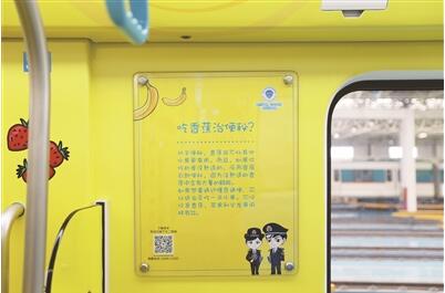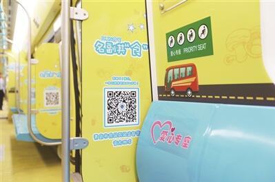 “剛才一走進(jìn)車廂我就眼前一亮,感覺(jué)像進(jìn)了動(dòng)漫館一樣,很炫很有趣。”來(lái)自北京的乘客曲頌一邊忙著在地鐵3號(hào)線的車廂里拍照片,一邊說(shuō),“仔細(xì)一看,這些漫畫(huà)和卡通形象都是在宣傳食品安全方面的科普知識(shí)。因?yàn)楣ぷ鞯脑颍瑖?guó)內(nèi)的地鐵我?guī)缀醵甲^(guò)了,這樣的車廂我還是第一次看到,非常有創(chuàng)意。我剛才在朋友圈里一轉(zhuǎn)發(fā),立刻就引發(fā)了很多秒贊?!?br/>