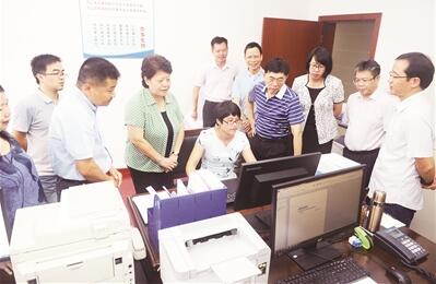 圖為李康(左三)了解廣西食品藥品安全抽檢信息管理平臺建設(shè)情況