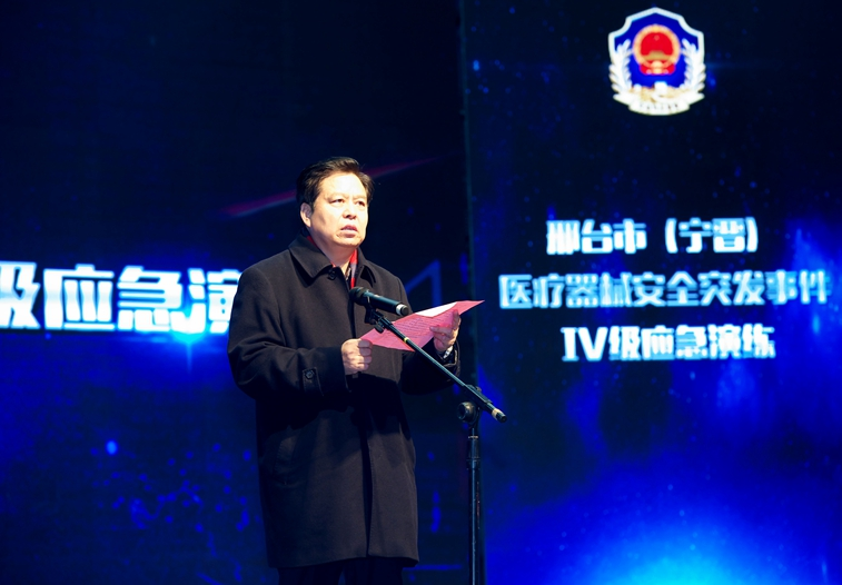 市政府副市長(zhǎng)、食安委副主任鄧素雪在致辭中指出:食品藥品安全是最大的民生工程,近年來(lái),在省政府食安辦、省食藥監(jiān)局的大力指導(dǎo)、支持下,邢臺(tái)市委、市政府高度重視食品藥品安全工作,牢固樹(shù)立以人民為中心的發(fā)展思想,堅(jiān)持源頭嚴(yán)防、過(guò)程嚴(yán)管、風(fēng)險(xiǎn)嚴(yán)控、違法嚴(yán)懲,守住了不發(fā)生重大食品藥品安全事件和區(qū)域性、系統(tǒng)性風(fēng)險(xiǎn)隱患的底線,確保了全市780萬(wàn)人民群眾飲食用藥安全。應(yīng)急工作是保障食品藥品安全的重要內(nèi)容,是食品藥品安全監(jiān)管工作的“防火墻”和最后屏障。邢臺(tái)市將食品藥品突發(fā)事件應(yīng)急處置工作擺上重要位置,科學(xué)編制應(yīng)急預(yù)案,加強(qiáng)應(yīng)急工作保障,連續(xù)四年組織開(kāi)展大規(guī)模食品藥品應(yīng)急演練,提升了應(yīng)急處置能力,守牢了食品藥品安全最后一道防線。醫(yī)療器械作為食品藥品(包括食品、藥品、保健食品、化妝品、醫(yī)療器械,簡(jiǎn)稱(chēng)“四品一械”)安全的重要組成部分,關(guān)系群眾身體健康和生命安全。邢臺(tái)市在全省首次組織開(kāi)展這次醫(yī)療器械突發(fā)事件應(yīng)急演練,是對(duì)我市醫(yī)療器械突發(fā)事件應(yīng)急處置工作的一次大檢閱,旨在規(guī)范醫(yī)療器械安全突發(fā)事件應(yīng)急處置流程,鍛煉隊(duì)伍的突發(fā)事件應(yīng)對(duì)能力。