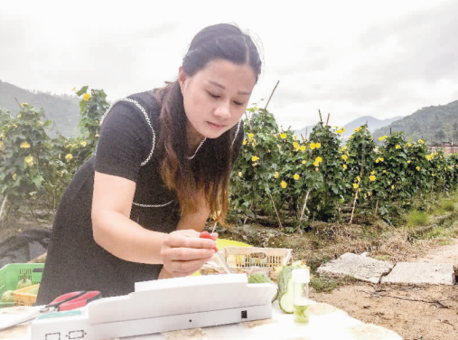 圖為蔬菜生產(chǎn)質(zhì)量安全監(jiān)管員在田間對菜農(nóng)種植的蔬菜進行快檢。