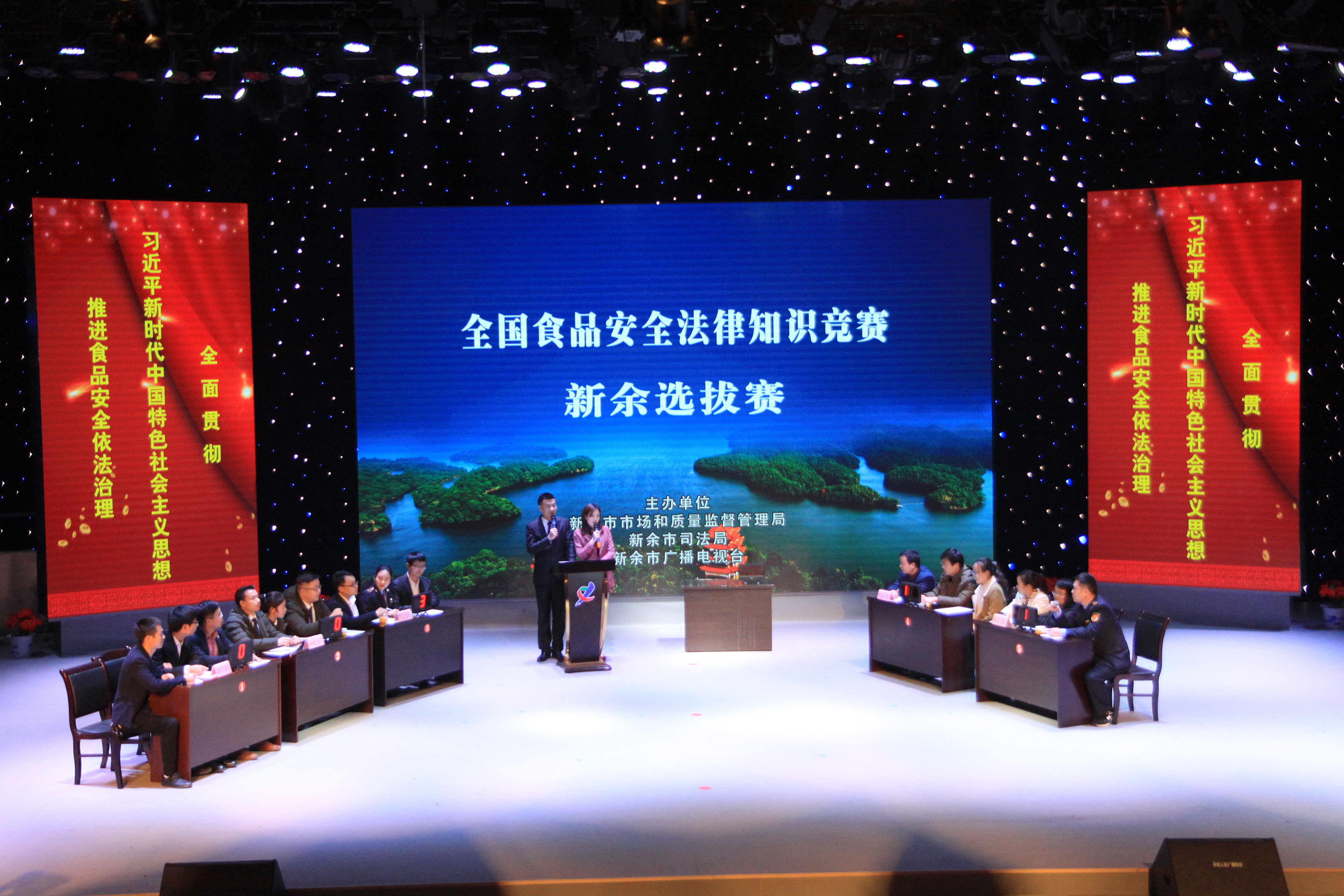 12月21日,新余市局、新余市司法局、新余市廣播電視臺聯(lián)合主辦的全國食品安全法律知識競賽新余選拔賽在新余電視臺二樓演播廳舉行。