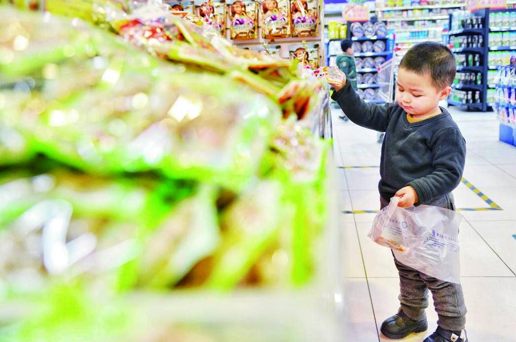 實現(xiàn)散裝食品全程追溯能夠讓消費者真正放心。圖為一名小顧客正在選購散裝食品。董傳陽/攝