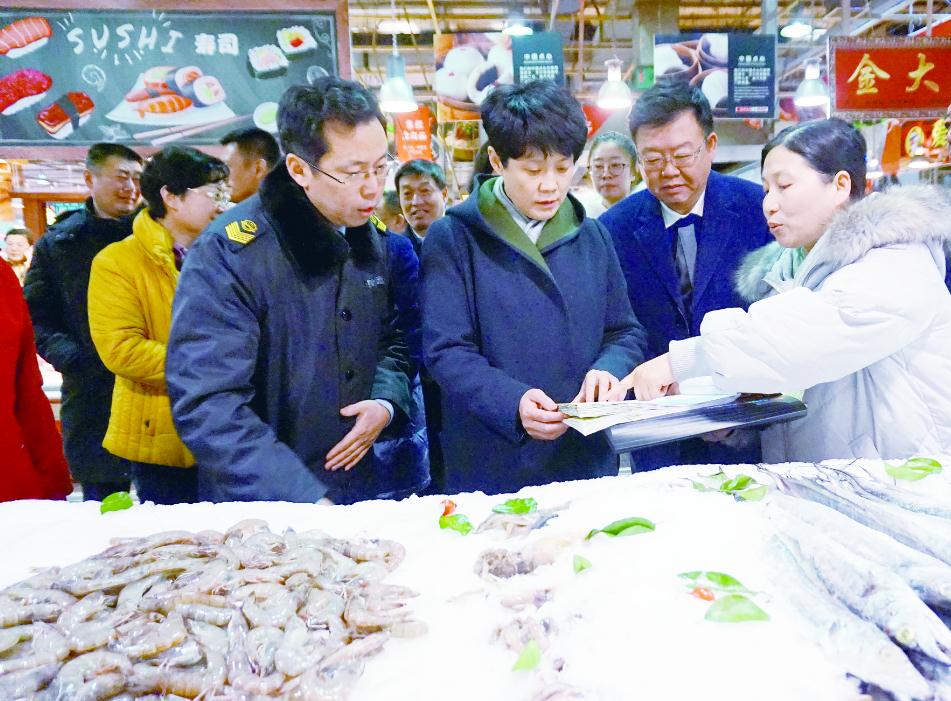 圖為2月1日山西省副省長(zhǎng)曲孝麗(前排左二)帶隊(duì)在太原市小店區(qū)美特好超市檢查春節(jié)食品供應(yīng)和食品安全保障情況。本報(bào)記者李平林/攝
