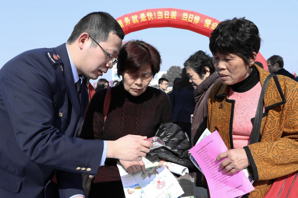 圖為3月13日江蘇省常州市金壇區(qū)市場監(jiān)管局在金壇廣場