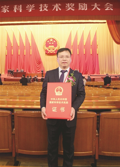 圖為吳黎明在2017年度國家科學(xué)技術(shù)獎(jiǎng)勵(lì)大會(huì)現(xiàn)場。