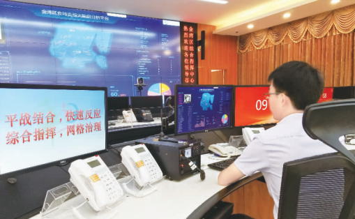 圖為珠海市金灣區(qū)食藥監(jiān)局工作人員值守大數(shù)據(jù)分析平臺(tái)。
