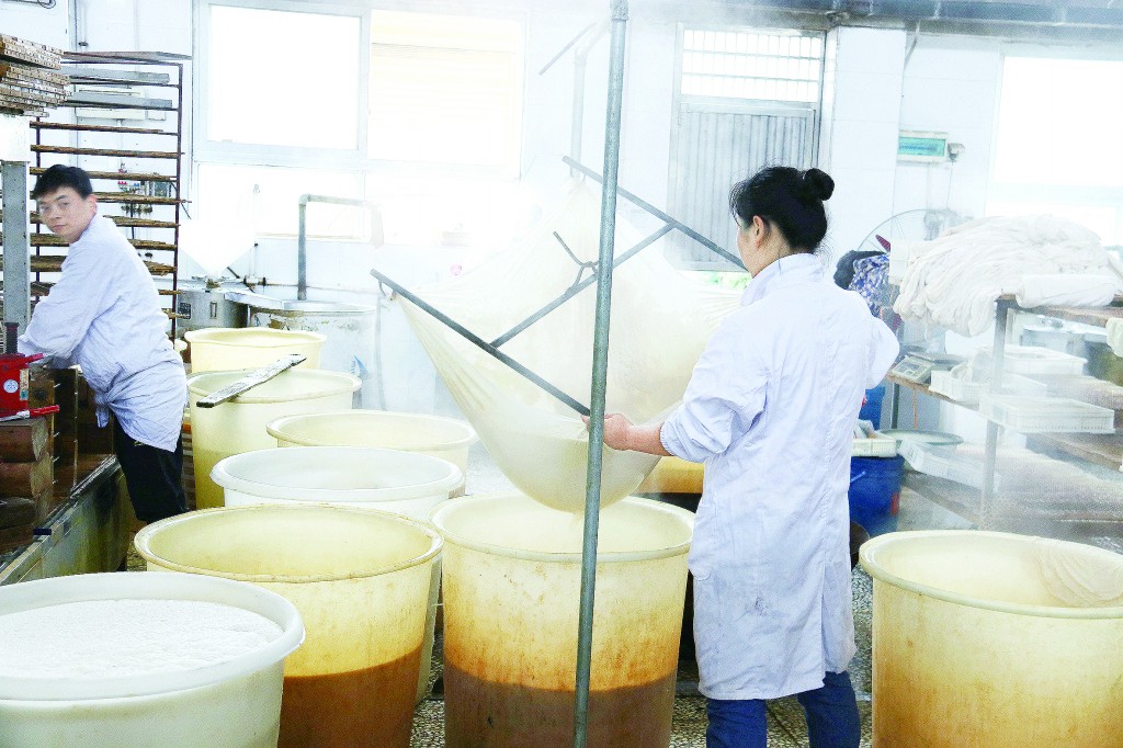 圖②為宜昌聯(lián)建農(nóng)產(chǎn)品開發(fā)有限公司豆腐加工作坊內(nèi)的工作場(chǎng)景。本報(bào)記者 陳燕飛 攝