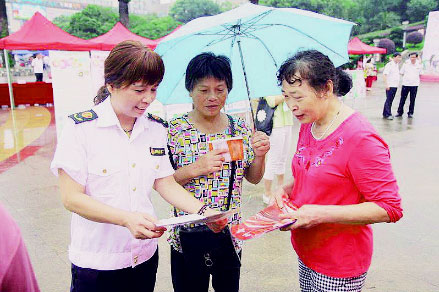 圖為監(jiān)管工作人員向群眾宣傳食品安全知識(shí)/攝影 錢國兵