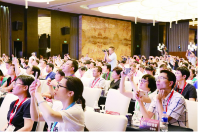 圖為年會醫(yī)藥創(chuàng)智國家論壇開幕式上,與會代表紛紛拍照記錄會議盛況。攝/ 中國醫(yī)藥報 記者 申楊