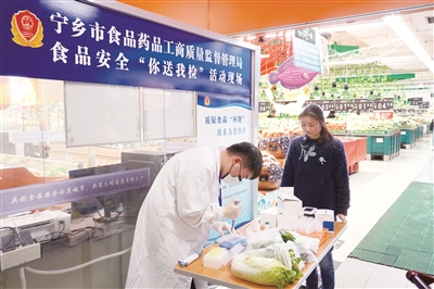 今年,寧鄉(xiāng)市開啟了“你點(diǎn)我檢,你送我檢”食品免費(fèi)檢測(cè)便民服務(wù)/攝影 劉暢