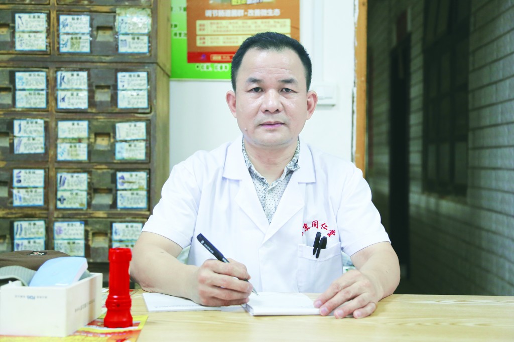 鄧興亮先看了看小患者有沒有發(fā)燒等情況,然后拿出幾種藥,耐心地給何大姐解釋服藥的注意事項。言語之間就像是熟識多年的老朋友一樣?!拔覀?nèi)胰说牟《荚卩囜t(yī)生這里看的,他了解我們每個人的身體情況?!痹诤未蠼阊劾镟嚺d亮是一個怎樣的醫(yī)生呢?記者忍不住向她提問?!拔矣X得他是一個神通廣大的人,鼻炎、頸椎病、中風(fēng)這些他樣樣都曉得,我們很相信他?!焙未蠼慊卮鸬?。