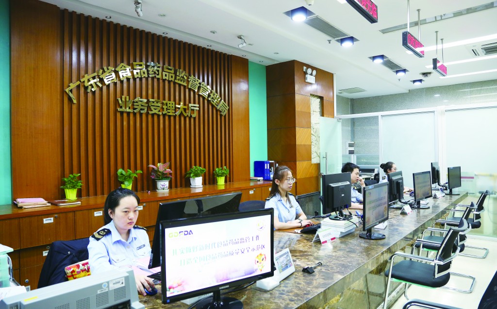 圖為廣東省食藥監(jiān)局業(yè)務(wù)受理大廳。