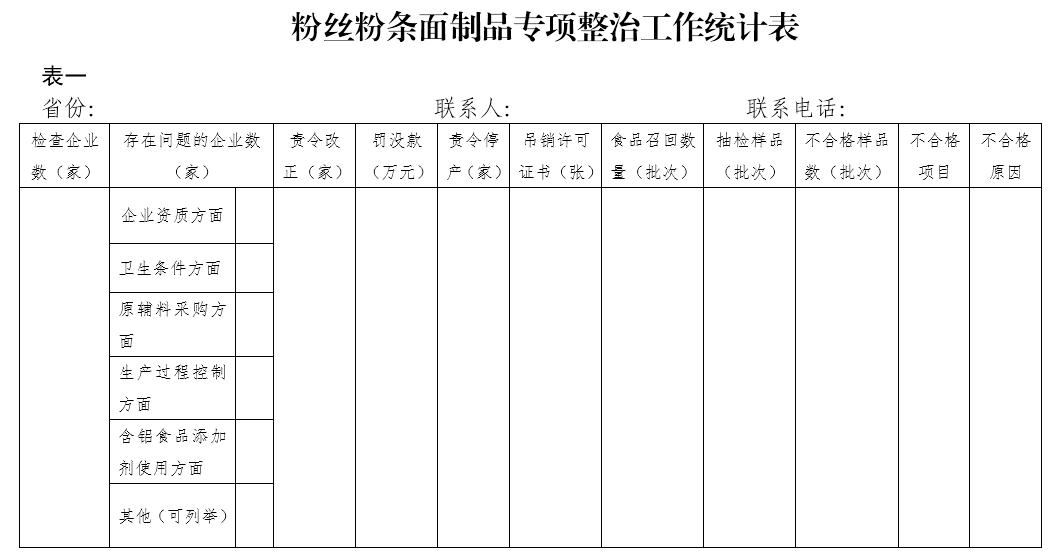 附件:粉絲粉條面制品專項(xiàng)整治工作統(tǒng)計(jì)表