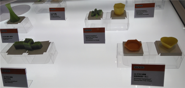 瓦克化學(xué)展出的主打技術(shù)就是它了?!安牧?、口感上,和普通口香糖差不多,區(qū)別在于3D打印可以實(shí)現(xiàn)私人訂制,做成不同的性狀、刻上自己的名字等,不過(guò),私人訂制成本會(huì)比較高,批量生產(chǎn)還是很劃算的?!惫ぷ魅藛T告訴記者。