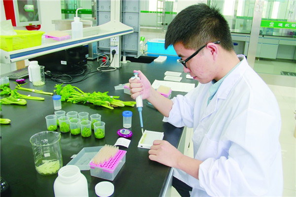 南通農(nóng)副產(chǎn)品物流中心的農(nóng)產(chǎn)品檢驗(yàn)檢測(cè)中心每天完成快檢600批次以上。