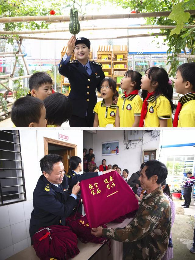 桂林市興安縣食藥監(jiān)工作人員在“大管家”科普站進(jìn)行中小學(xué)生食品安全科普宣傳并向參加完流動(dòng)課堂的“一條龍”餐飲從業(yè)者發(fā)放工作服。