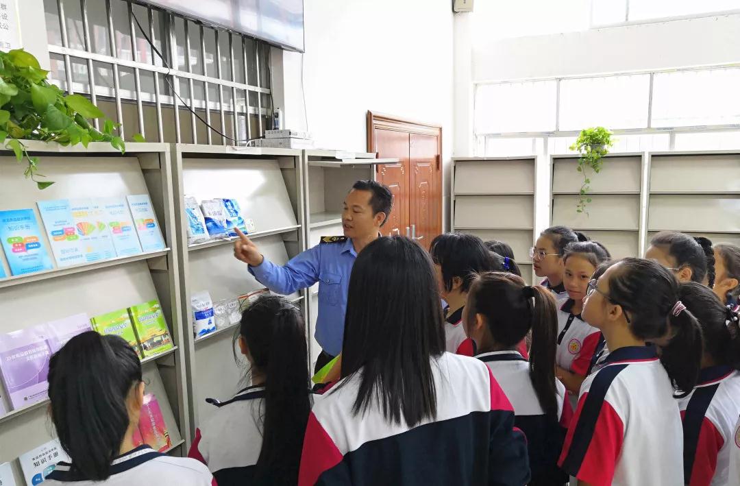 田陽(yáng)縣食藥監(jiān)執(zhí)法人員充分利用科普宣傳站開(kāi)放日為學(xué)生講解食品藥品安全科普知識(shí)。