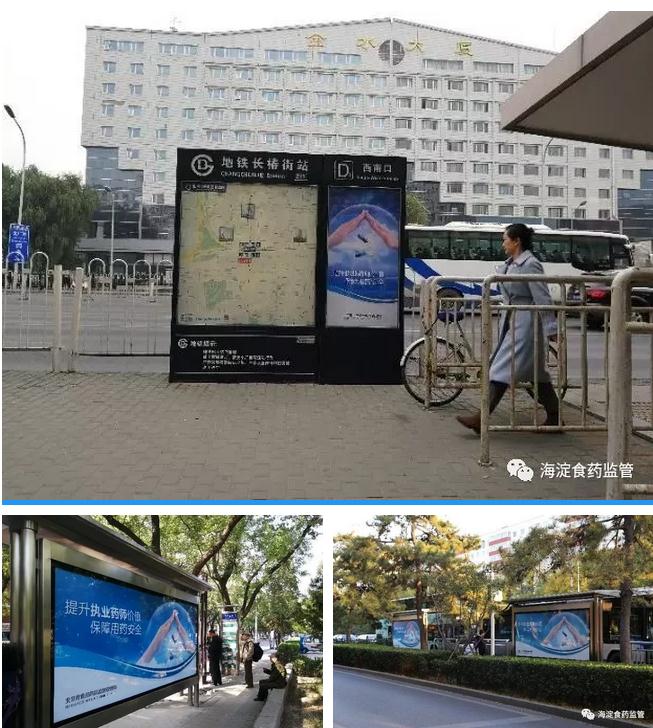 “全國安全用藥月”期間,執(zhí)業(yè)藥師注冊中心選擇北京中心城區(qū)人流密集的海淀黃莊南站、宣武門東、雙井橋東站等公交站亭及長椿街地鐵站等幾十個(gè)站點(diǎn),采取固定宣傳點(diǎn)和流動宣傳點(diǎn)兩種方式,在同一時(shí)間段集中設(shè)置“提升執(zhí)業(yè)藥師價(jià)值 保障用藥安全”大型燈箱公益廣告。