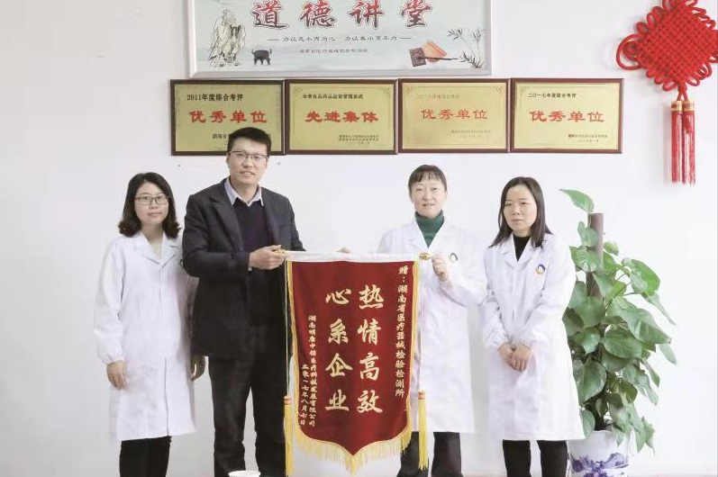 湖南明康中錦醫(yī)療科技發(fā)展有限公司向湖南省器檢所贈送錦旗