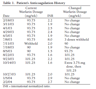 患者,58歲男性(高加索人),因預(yù)防卒中長期口服華法林。