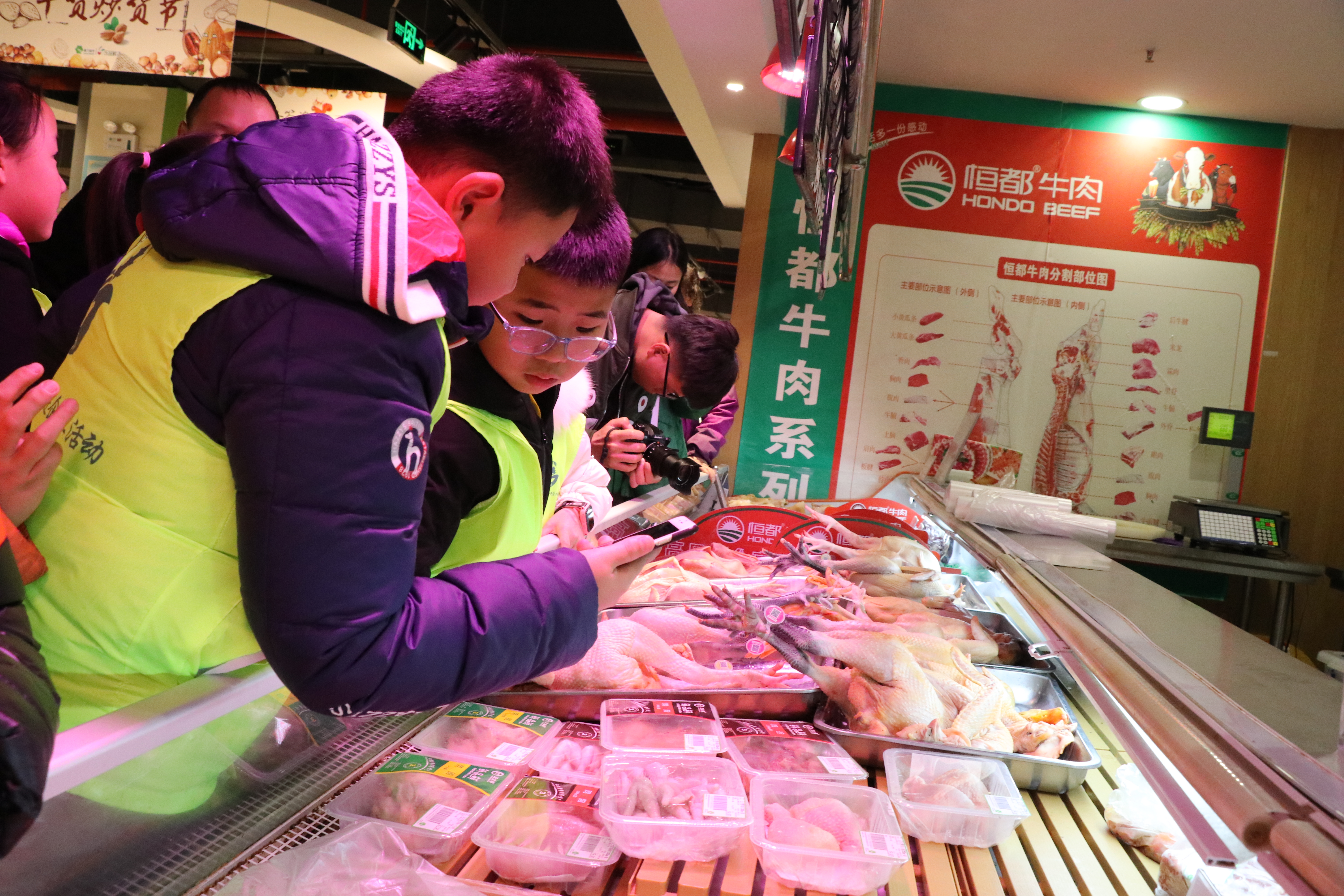 觀摩團代表在貴陽市觀山湖區(qū)星力超市會展城店用手機掃碼就能了解生禽的所有信息,包括生產(chǎn)地、年齡、成長情況等