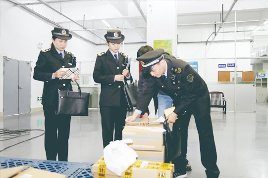圖為演練中執(zhí)法人員查處不合格醫(yī)療器械。楊發(fā)苗 攝