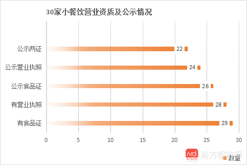 30家小餐飲營(yíng)業(yè)資質(zhì)及公示情況。