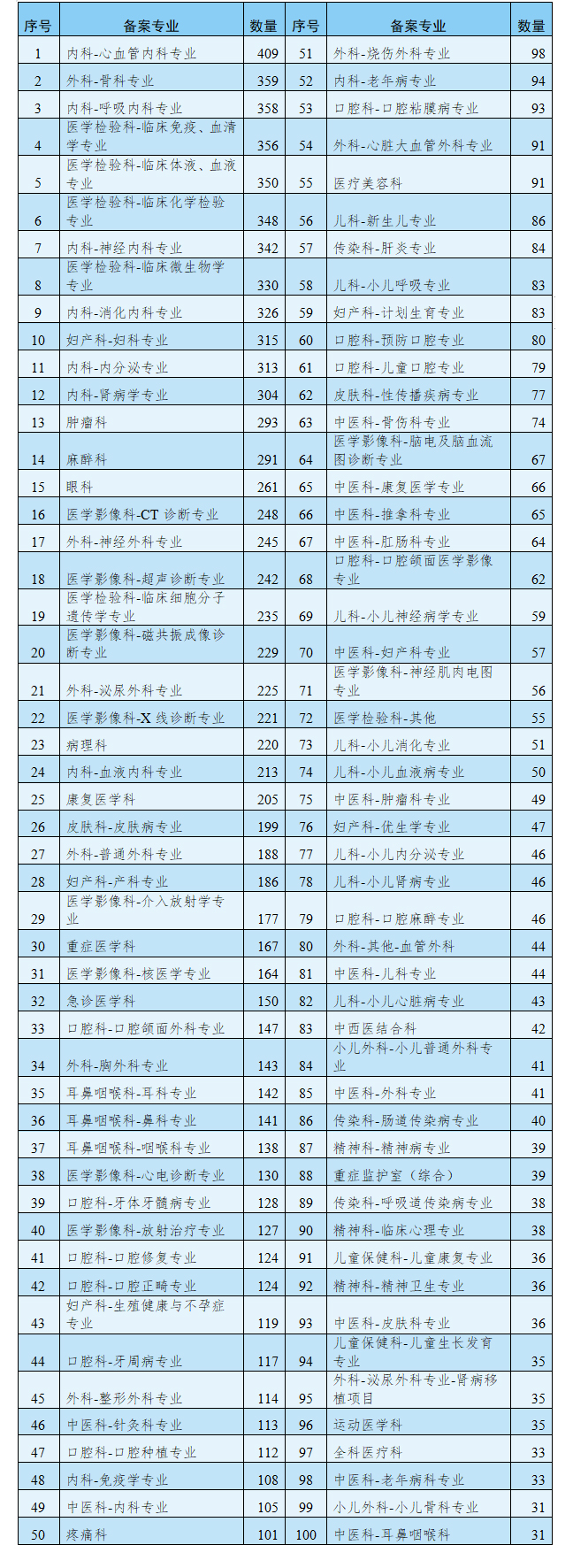 三、按臨床專業(yè)進(jìn)行統(tǒng)計(jì)