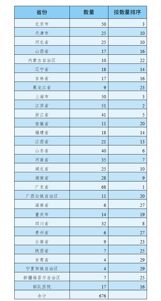 截止2018年12月31日,全國有29個(gè)省、自治區(qū)、直轄市和部隊(duì)醫(yī)院676個(gè)機(jī)構(gòu)完成了醫(yī)療器械臨床試驗(yàn)機(jī)構(gòu)備案工作,備案數(shù)量前五位的省局:廣東省、江蘇省、北京市、上海市和浙江省。西藏自治區(qū)和青海省未有醫(yī)療機(jī)構(gòu)完成備案工作。相關(guān)圖表如下: