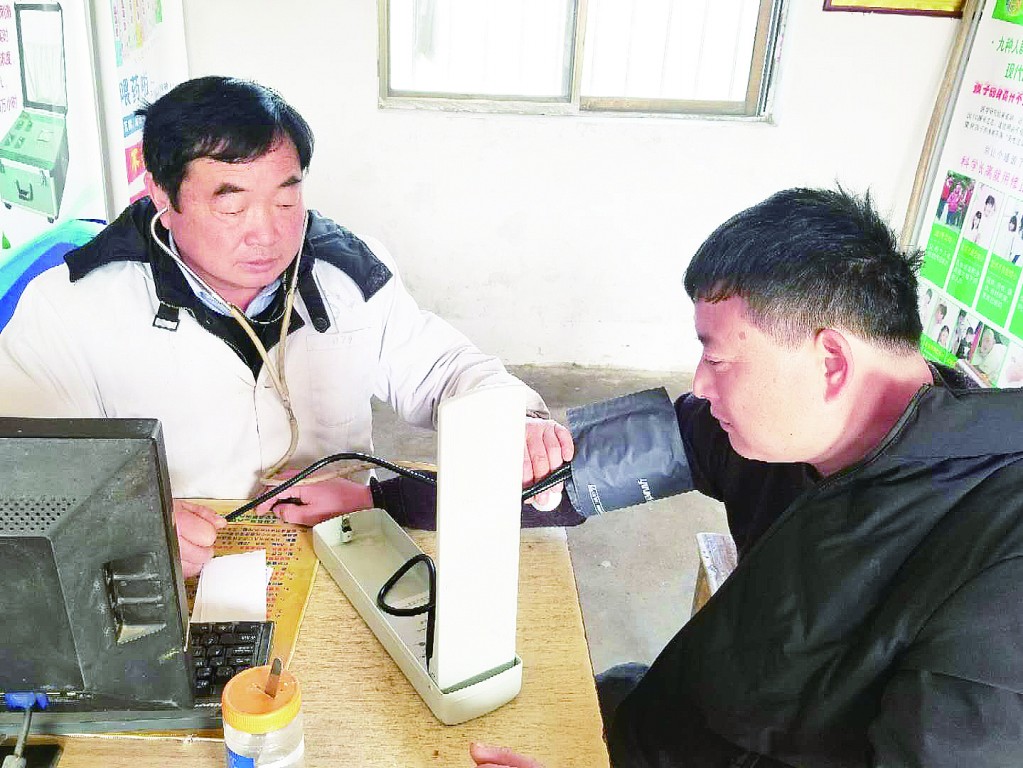 張謀良(左)在給患者測(cè)血壓。