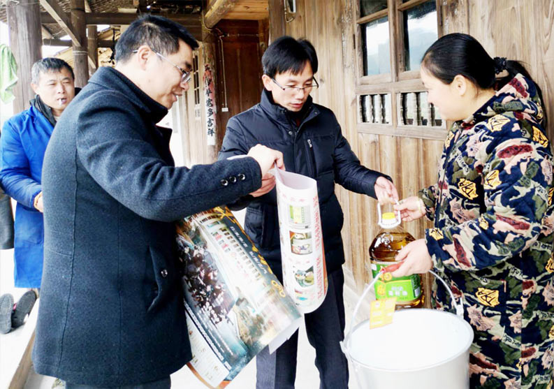 1月23日,通道侗族自治縣食品藥品工商質(zhì)量監(jiān)管局黨員干部來到精準(zhǔn)扶貧的溪口鎮(zhèn)畫筆村,走訪慰問貧困村民、貧困老黨員,詳細(xì)了解他們的家庭生活、看病就醫(yī)、返鄉(xiāng)創(chuàng)業(yè)情況,為結(jié)對幫扶貧困戶送上慰問金和慰問物資。劉強(qiáng) 攝