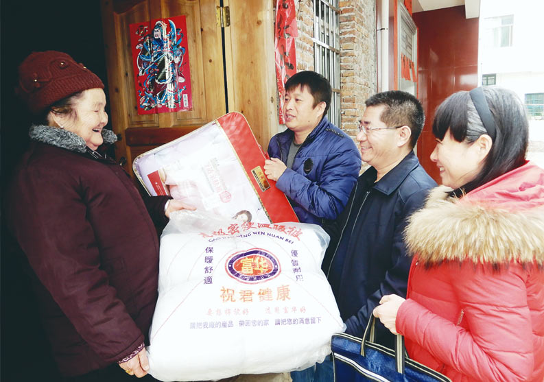 節(jié)前慰問送溫暖,濃濃真情暖民心。新春佳節(jié)將至,各地食品藥品監(jiān)管部門紛紛深入定 點(diǎn)扶貧村,走進(jìn)貧困戶家中噓寒問暖、送衣送物,并帶去節(jié)日的祝福,傳遞脫貧致富的堅定信念。本版用一組鏡頭,向扶貧攻堅的干部職工致以崇高敬意!向?yàn)槊撠毝鴬^斗的鄉(xiāng)親們致以 新年最溫暖的祝福!