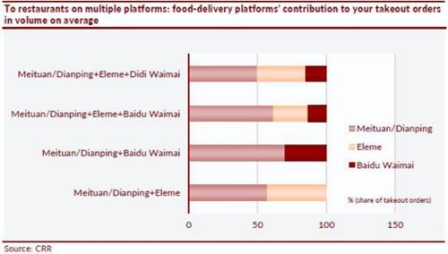 CRR報告顯示,美團(tuán)與大眾點評合并產(chǎn)生協(xié)同效應(yīng),帶來流量,促進(jìn)平臺運營效率提升。2015年10月,美團(tuán)與大眾點評正式達(dá)成戰(zhàn)略合作,合并后的美團(tuán)強強聯(lián)手,實現(xiàn)優(yōu)勢互補和戰(zhàn)略協(xié)同,產(chǎn)生了1+1>2的共贏效應(yīng)。使用多個外賣平臺運營餐廳的老板稱,相比其他平臺,美團(tuán)為其帶來了最多的流量。一家BBQ餐廳老板告訴CRR,“美團(tuán)的人氣已經(jīng)很高了,現(xiàn)在通過和大眾點評網(wǎng)合作,我們餐廳的知名度提高了,因此我們從美團(tuán)的訂單也在增加”。