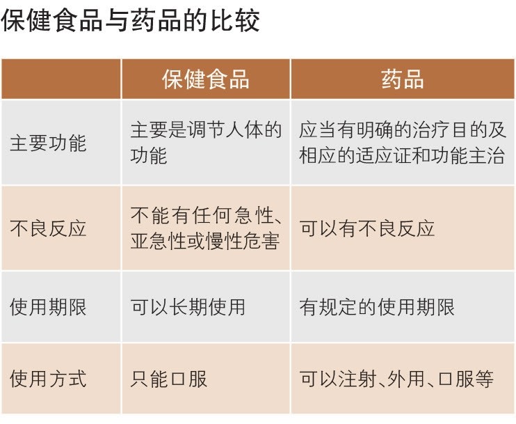 ?。?)保健食品與藥品的區(qū)別,請(qǐng)見下表。