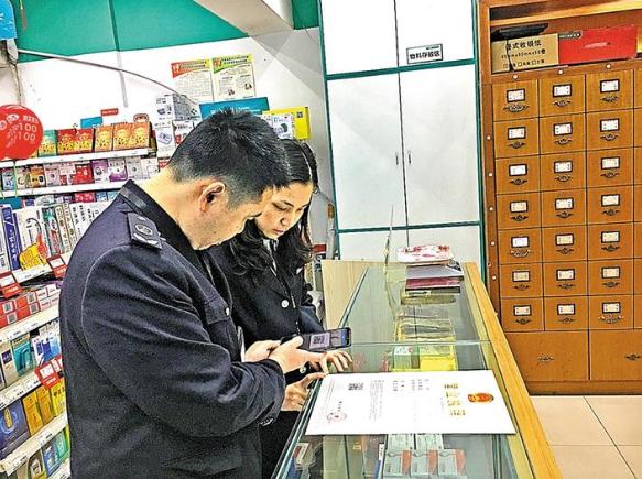 執(zhí)法人員檢查藥店“智慧藥店”建設(shè)情況。記者 李立治/圖