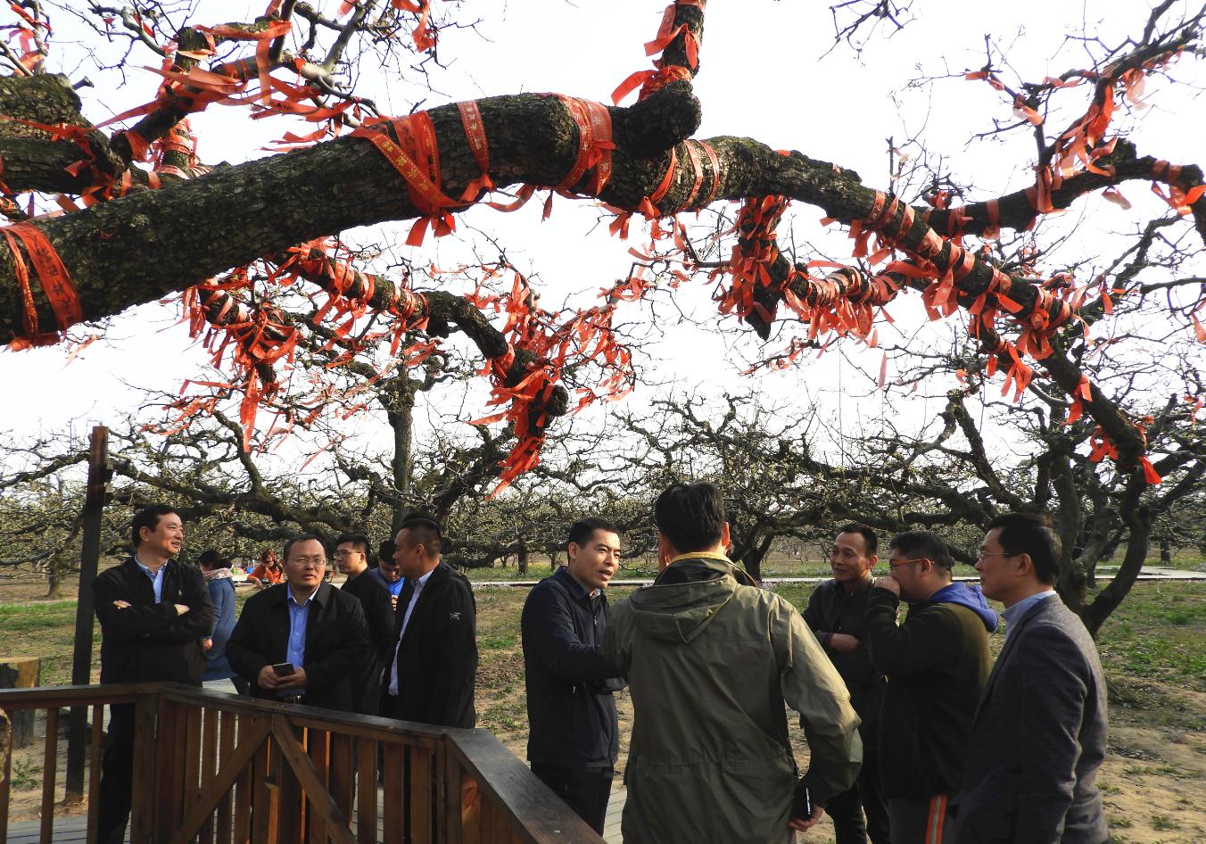 圖為國(guó)家藥典委員會(huì)一行參觀碭山縣梨樹王風(fēng)景區(qū)。 記者 蔣守福 攝