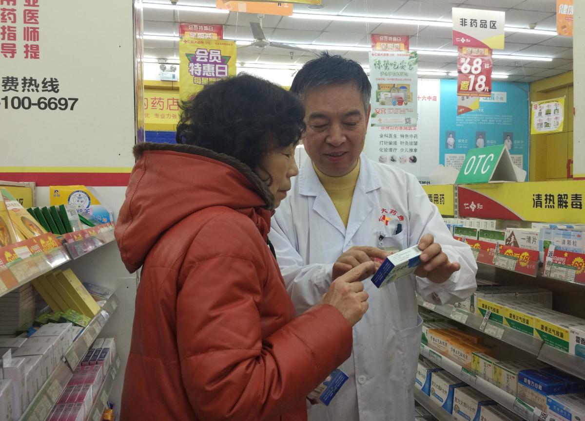 圖為謝東杰為顧客進(jìn)行用藥指導(dǎo)。記者 李晴 攝